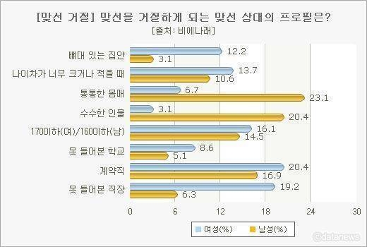 남녀 맞선 거절하게 되는 상대방 프로필